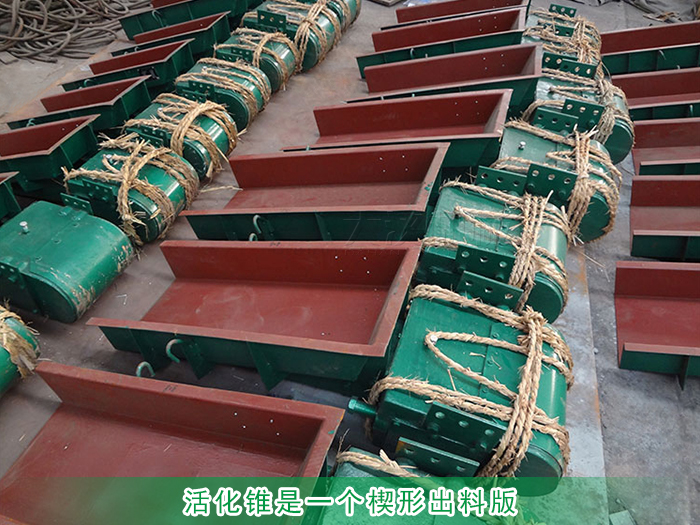 活化錐是一個楔形出料版,小頭向上,固定在共振體上,由于激振器產(chǎn)生的激振力的作用,活化錐在振動方向上和共振體一起作近似于簡諧振動。通過活化錐產(chǎn)生向上的力,將水平振動高效地傳遞到頂部物料,振動力所產(chǎn)生的擾動能量松動物料使其下落。
