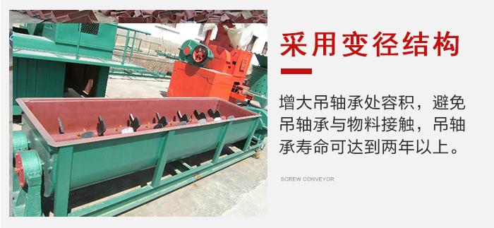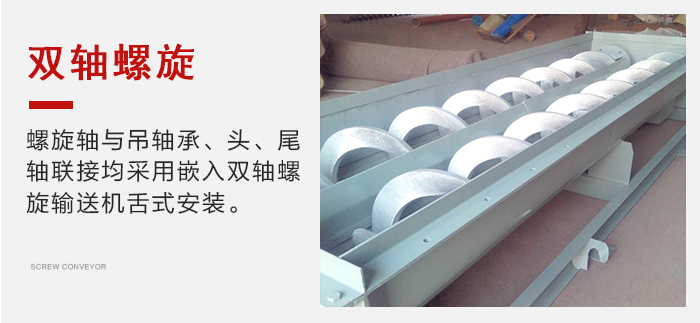 螺旋軸與吊軸承、頭、尾軸聯(lián)接均采用嵌入雙軸螺旋輸送機舌式,安裝、拆卸不需要軸向移動,維修方便。芯軸長、吊掛少、故障點少。