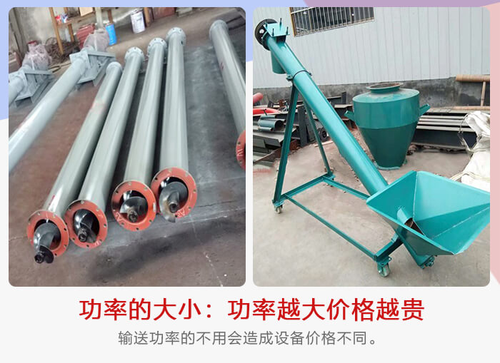 移動式螺旋輸送機在輸送功率上是不同的,一般來說工廠、企業類使用的螺旋輸送機輸送量在135t/h的輸送率,高輸送功率的價格就會高一點;而家庭、小型企業使用的小型的移動式螺旋輸送機,其輸送量在:10t/h的輸送率,低輸送功率的價格就會相對低一點;高輸送量的螺旋輸送機相比低輸送量價格會高出幾千元甚至上萬元的差價。