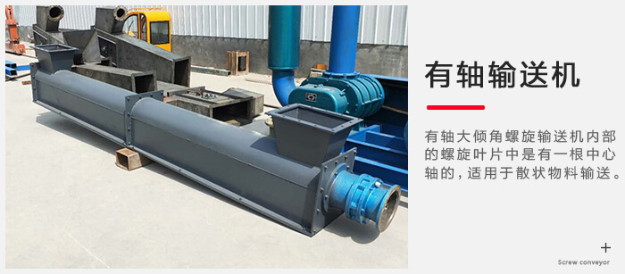 從內部構造來說,有軸大傾角螺旋輸送機內部的螺旋葉片中是有一根中心軸的,這根中心軸可以幫助輸送機提升效率且防止物料堆積滑落。其適用于散狀物料的輸送。