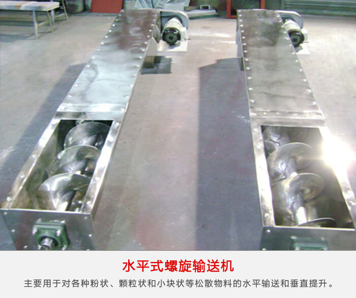 主要分為水平式不銹鋼螺旋輸送機(jī)和垂直式螺旋輸送機(jī),主要用于對(duì)各種粉狀、顆粒狀和小塊狀等松散物料的水平輸送和垂直提升。