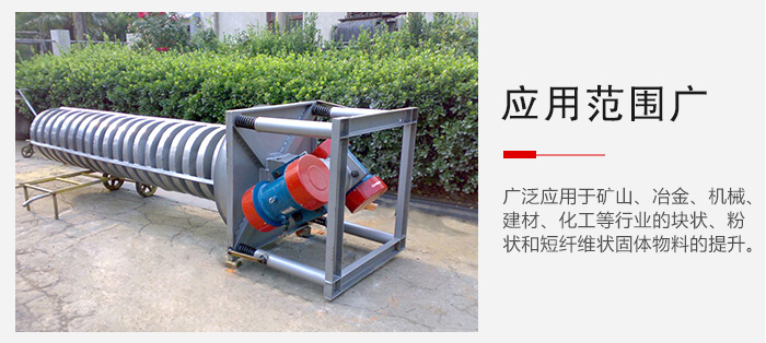 2、廣泛應用于礦山、冶金、機械、建材、化工、橡膠、醫藥、電力、糧食、食品等行業的塊狀、粉狀和短纖維狀固體物料的提升。