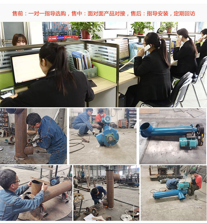 大漢垂直立式螺旋輸送機(jī)廠家采用線上,線下雙渠道賣貨,擁有專業(yè)的售前,售中,售后服務(wù)團(tuán)隊,售前一對一指導(dǎo)選購,售中接用戶來廠參觀,專業(yè)技術(shù)人員與用戶對接需求;售后專人上門講解設(shè)備使用,指導(dǎo)安裝,定期回訪,售后記錄跟蹤。