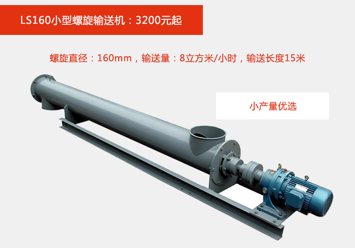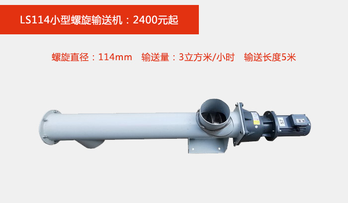 小型螺旋輸送機有114,159,160,200等4種型號,不同型號對應的輸送量,輸送長度,價格自然不同;例: