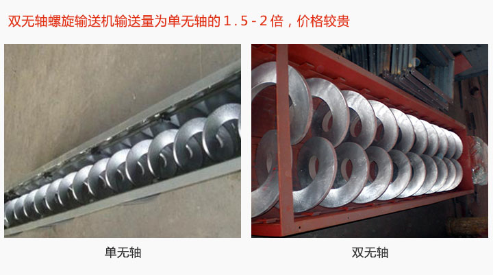 無軸螺旋輸送機型號有WLS150-WLS500等6中規格,型號越大產量越高,價格越貴;此外還分單無軸和雙無軸兩種:雙無軸螺旋輸送機輸送量為單無軸的1.5-2倍,可輸送物料同時具備冷卻、攪拌的功能,其價格比單軸貴。