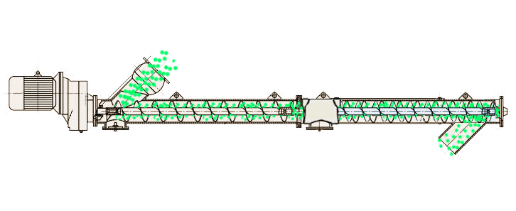 小型螺旋給料機基于螺旋推進原理實現(xiàn)物料的定量輸送。啟動后,變頻電機驅動減速器運轉,通過聯(lián)軸器帶動螺旋軸及葉片旋轉,物料從進料口進入密閉筒體后,被螺旋葉片推動,沿著筒壁做軸向移動,最終從出料口精準排出。設備可通過調(diào)節(jié)電機轉速,改變螺旋葉片的旋轉速度,從而控制物料輸送量。其緊湊的結構設計與非標定制的安裝角度,能適配多點進料、出料需求。