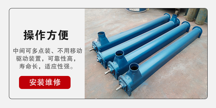 管型螺旋輸送機(jī)是利用螺旋旋轉(zhuǎn)而推移物料的連續(xù)輸送設(shè)備,適用輸送面粉、谷類、水泥、化肥、灰渣、沙子、石子、煤粉、小塊煤等物料。由于機(jī)體內(nèi)有效流通面積小,螺旋輸送機(jī)不宜輸磅易變質(zhì)的、粘性太大、易結(jié)塊的物料。