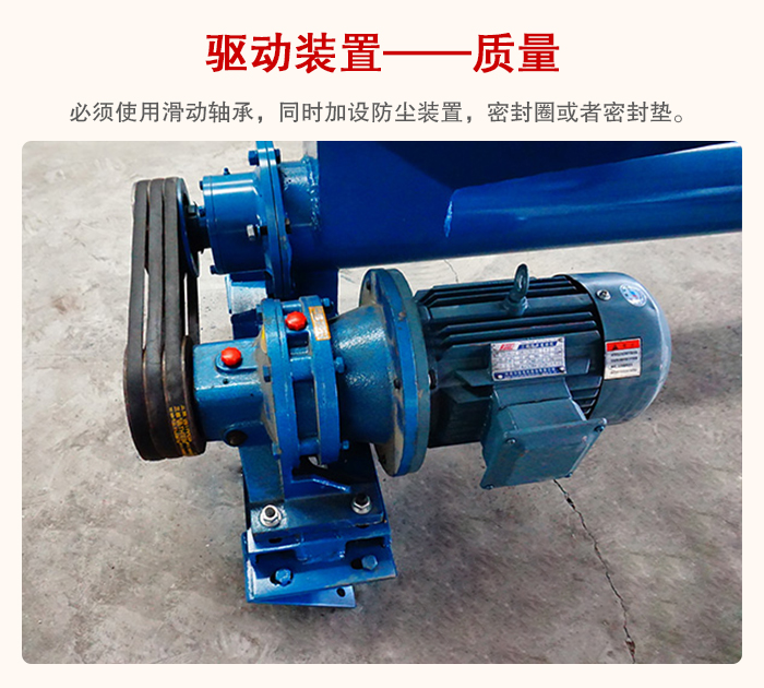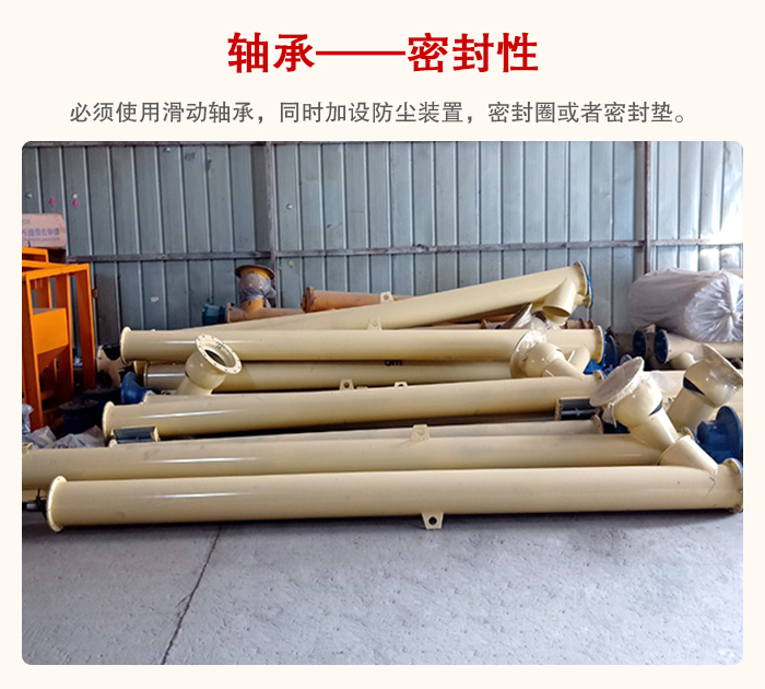 管型螺旋輸送機(jī)必須使用滑動軸承,同時加設(shè)防塵裝置,密封圈或者密封墊,這樣不會導(dǎo)致