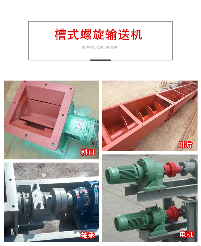 3、槽式螺旋輸送機整機體積小、轉速高、確保快速均勻輸送。