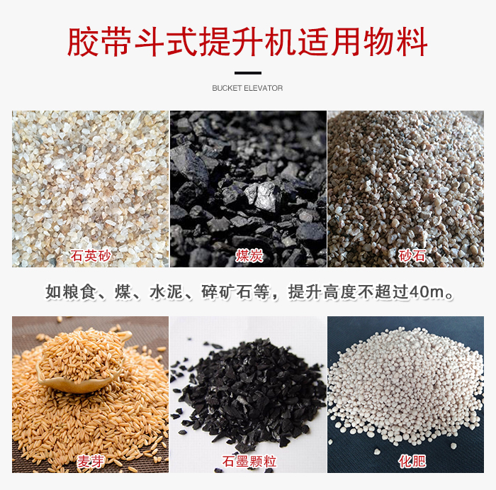 膠帶斗式提升機(jī)適用于垂直輸送粉狀、粒狀、及小塊狀的磨吸性較小的散狀物料,如糧食、煤、水泥、碎礦石等,提升高度不超過40m。TD型按JB3926-85《垂直斗式提升機(jī)》標(biāo)準(zhǔn)設(shè)計(jì)制造,目前國內(nèi)常用的斗式提升機(jī)均為垂直式,較新型。膠帶斗式提升機(jī)備有四種料斗Q型(淺斗)、H型(弧底斗)、ZD型(中深斗)SD型(深斗)。